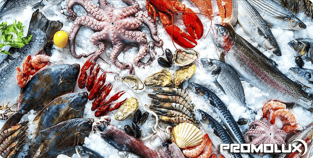 Properly lit seafood displays signal hygiene, freshness, and professional handling to shoppers.